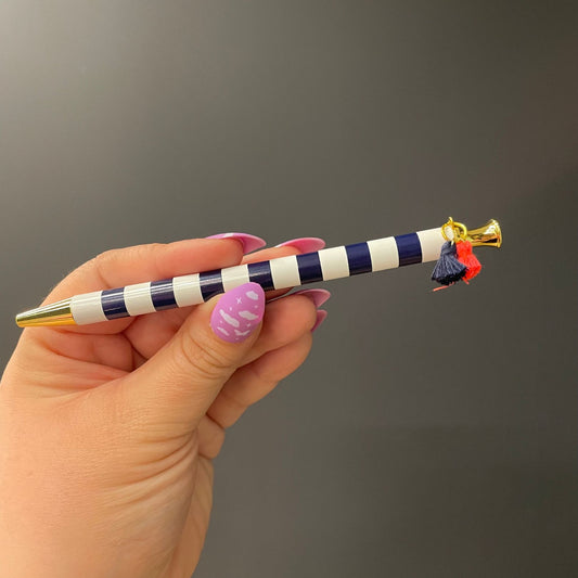 Navy Cabana Tassel Pen Set of 6 | Giftable Pen | Novelty Office Desk Supplies