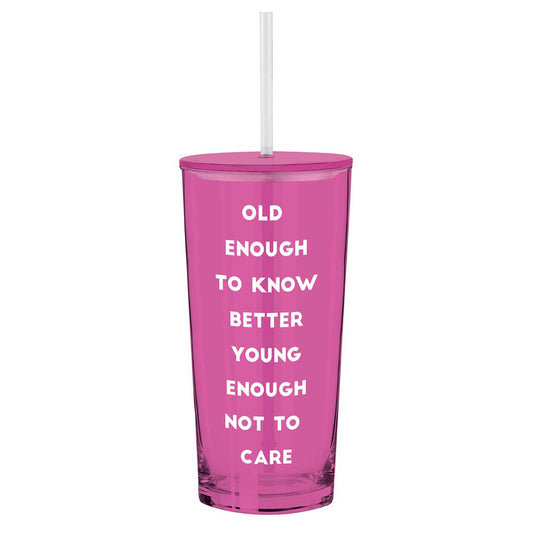 Old Enough To Know Better Young Enough Not To Care Glass Tumbler with Straw | Iced Beverages Drinkware | 3.34" x 9.25"