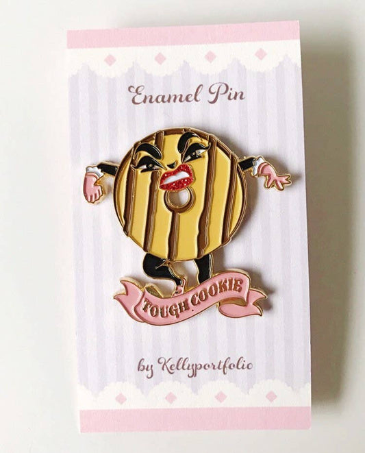 Tough Cookie Soft Enamel Pin | Sassy Glitter Lips Cookie Lapel Pin