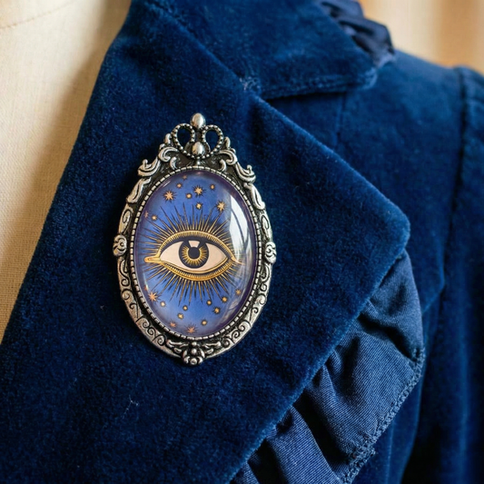 All-Seeing Eye Brooch | Vintage Art Deco Celestial Eye Glass Cabochon Pin