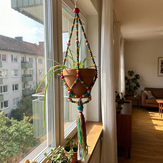 Rainbow Macrame Plant Holder | Bohemian Decorative Hanging Flowerpot Holder