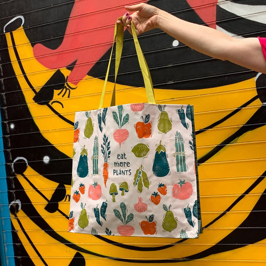 Eat More Plants Shopping Tote | Extra Large Market Eco Bag | 19.50" x 17.50" x 7"