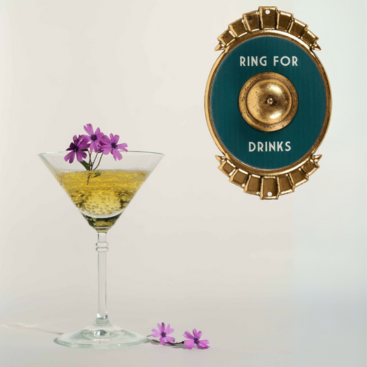 Ring For Drinks Metallic Gold Accents Metal Wall Decor | Vintage Alcohol Hanging Metal Display | 7" x 11"