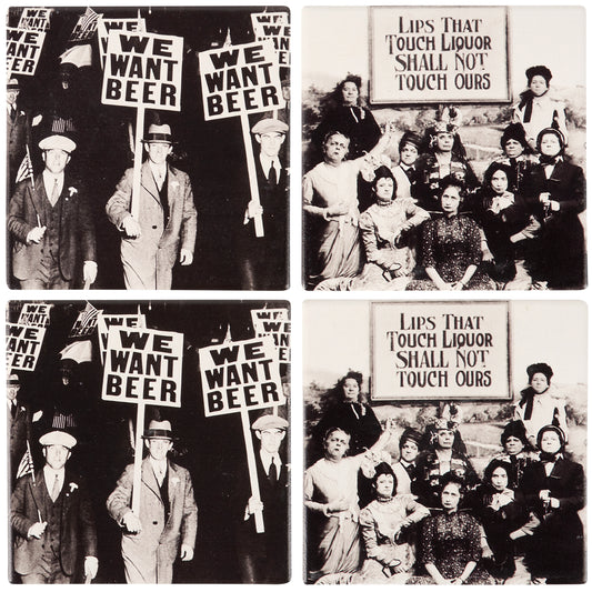 We Want Beer Prohibition Era Protestors Stoneware Coaster in Set of 4 | Beverage Drink Beer Mat | 4" x 4"