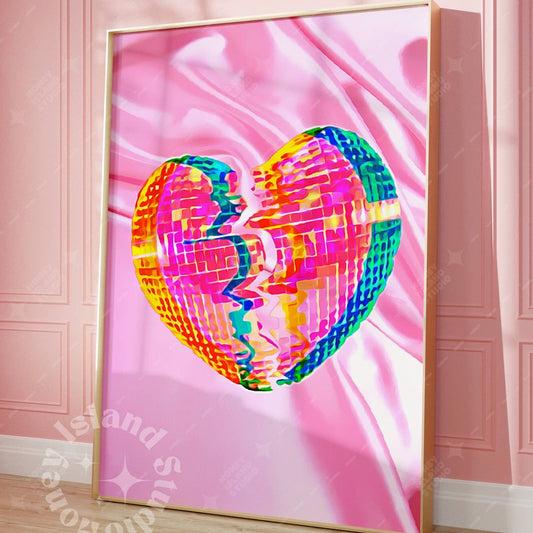 Broken Heart Disco Mini Art Print in Pink | 80s Unframed Miniature Poster