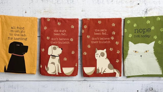 This collection features kitchen towels from our favorite purveyors of sass and sarcasm, including BlueQ, Primitives by Kathy, Bad Grandma Designs, Santa Barbara Design Studio, Slant, and Danica Studio. We’ve curated this mess of dish-drying rebellion so you can surround yourself with things that make you laugh and call out nonsense — even while making pasta.