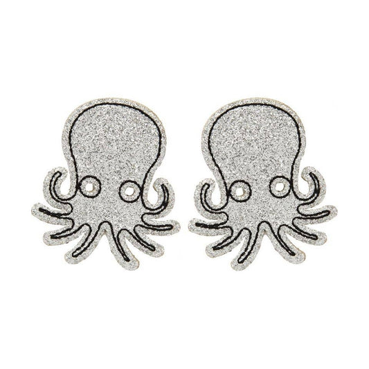 Sourpuss Silver Glitter Octopus Hair Clips Set of 2 | Nautical Rockabilly Hair Accessories