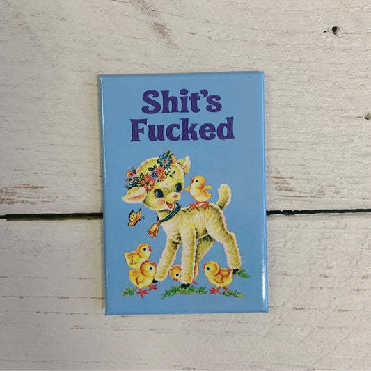 Shit's Fucked Cute Retro Illustration Lamb Fridge Magnet