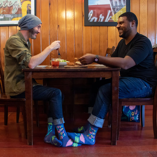 Love Who You Love Men's Crew Socks | Pride LGBTQ Equality Theme Socks | BlueQ at GetBullish