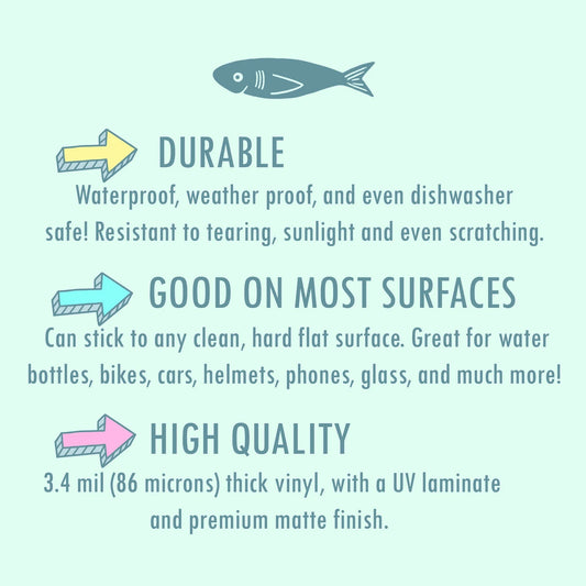 Each sticker is printed on high-quality vinyl that's built to last – because if you're going to make a statement, it should stick around long enough to raise some eyebrows. Perfect for personalizing your journal, decorating your bike, or just generally marking your territory with style. Warning: May cause spontaneous outbreaks of self-expression and chronic addiction to sticker collecting.