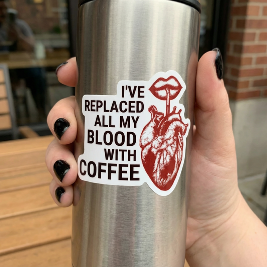 I've Replaced All My Blood With Coffee Vinyl Sticker | Coffee Lover