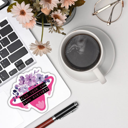 Mind Your Own Damn Business Flower Uterus Pro-Choice Vinyl Die Cut Sticker