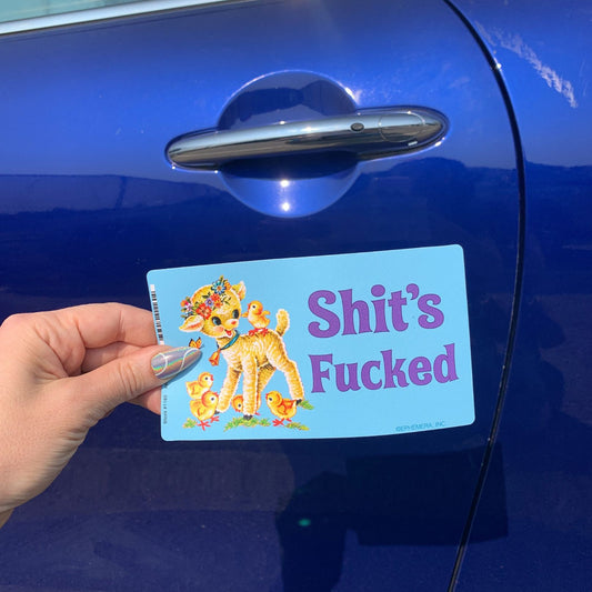 Shit's Fucked Large Vinyl Sticker with Vintage Lamb Motif | 6" x 3.4"