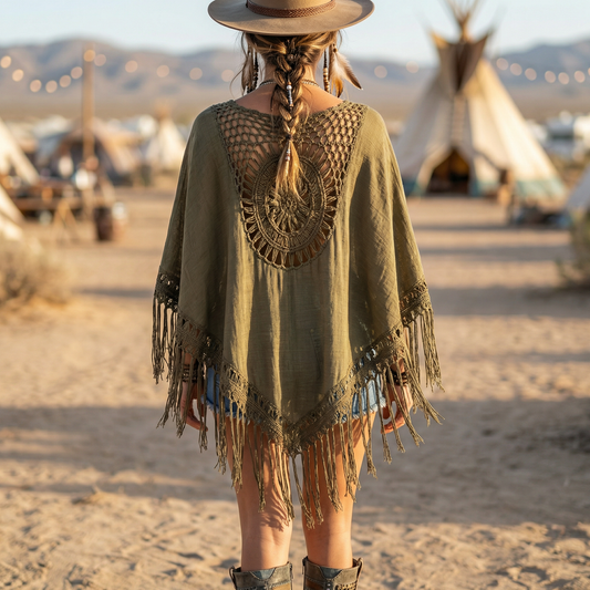 Crochet Back Tasseled Kimono | Bohemian Theme Cardigan Beachwear Cover-up