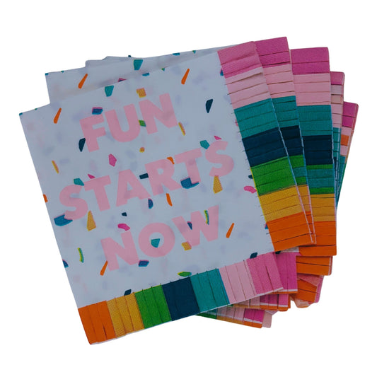 Fun Starts Now Fringe Beverage Napkins | Confetti Party Cocktail Paper Napkin | 5"