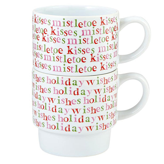 Set of 2 Mistletoe Kisses Holiday Stacking Mug Set