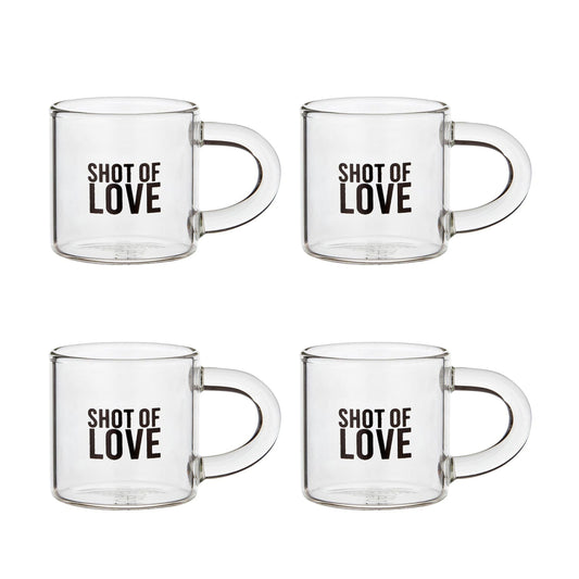Set of 4 Shot of Love Glass Espresso Cup | Coffee Tea Clear Mug