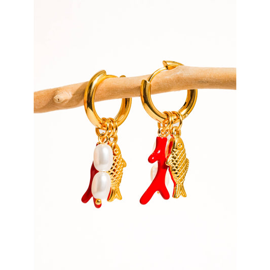 Rocaille 18K Gold Non-Tarnish Fish Pearl Earring