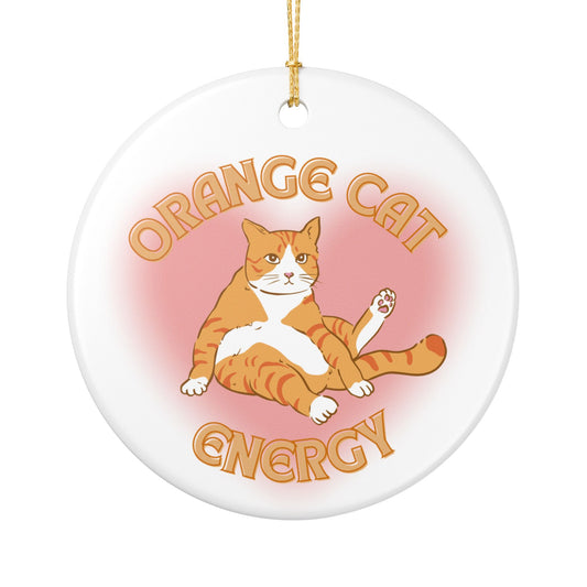 Orange Cat Energy Ceramic Ornament | Funny Cat Lover Holiday Decoration | Quirky Gift for Cat Moms & Dads