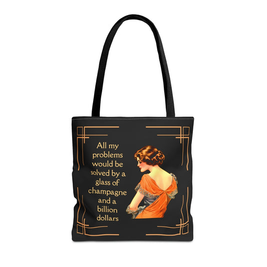 Glass of Champagne and a Billion Dollars Tote Bag in Art Deco Black | 16" x 16"