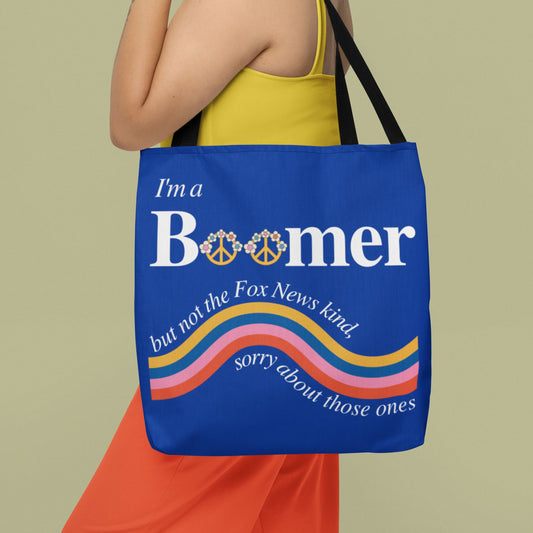 I'm a Boomer But Not the Fox News Kind Tote Bag in Blue | 16" x 16"