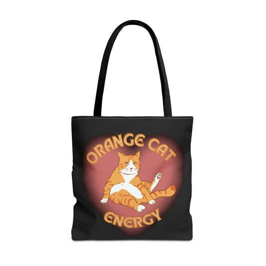 Orange Cat Energy Tote Bag in Black | 18" x 18"