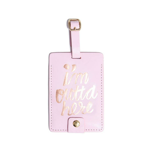 Ban.do I'm Outta Here The Getaway Luggage Tag in Pink | Leatherette Baggage Label | 4.5" x 3"
