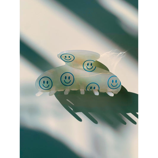 Velvet Claws 90s Hair Clip | Blue Joyful Emoji Face Hair Claw