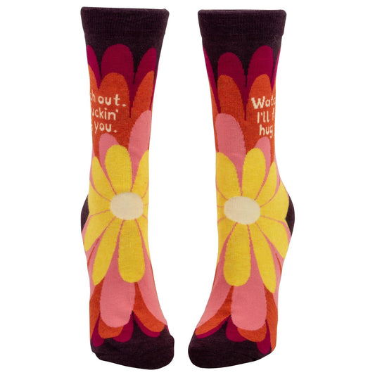 Watch Out - I'll Fuckin' Hug You Women's Crew Socks | BlueQ at GetBullish