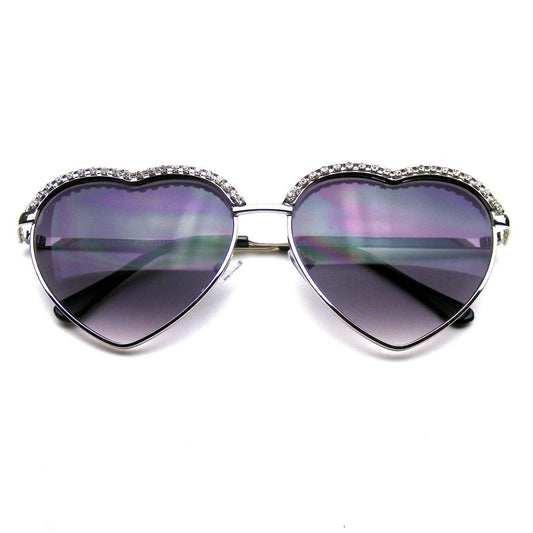 Heart Shape Rhinestone Aviator Sunglasses | Glam Silver Metal Frame UV400 Women’s Fashion Shades