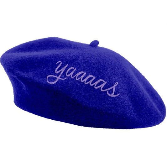 Yaaaas Embroidered Beret in Blue