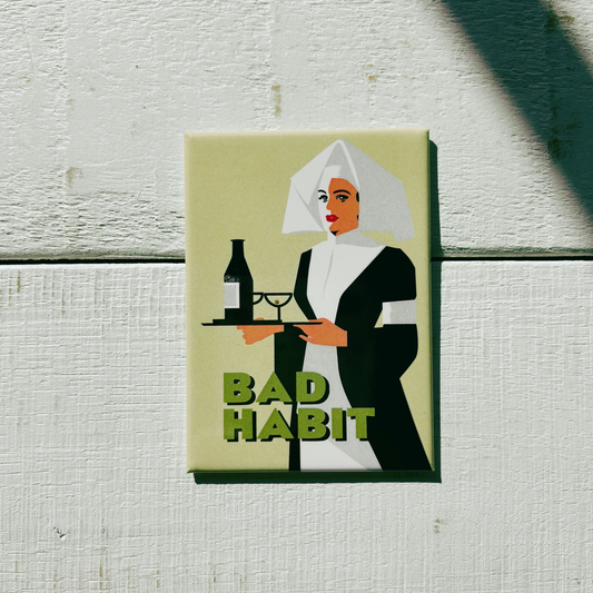 Bad Habit Drinking Nun 2.5" x 3.5" Vintage Art Magnet