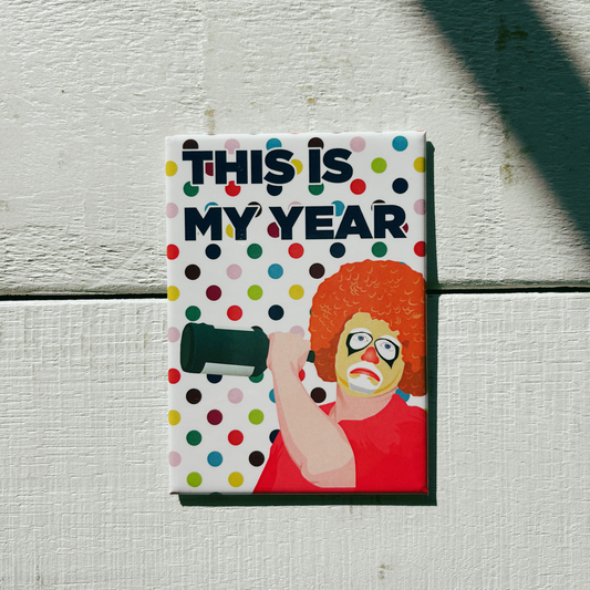 This Is My Year Sad Drinking Clown 2.5" x 3.5" Vintage Art Magnet