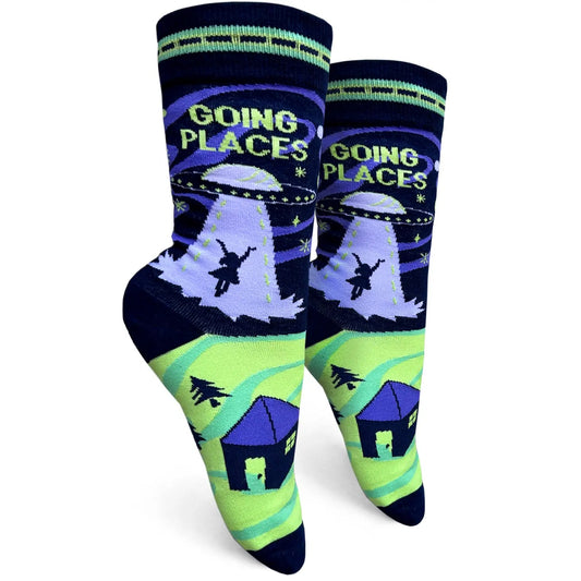 Alien Abduction "Going Places" Women's Socks in Black and Green