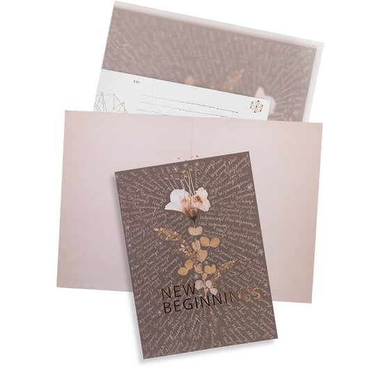 New Beginnings Greeting Card | Fine Rose Gold Details | Translucent Parchment Envelope