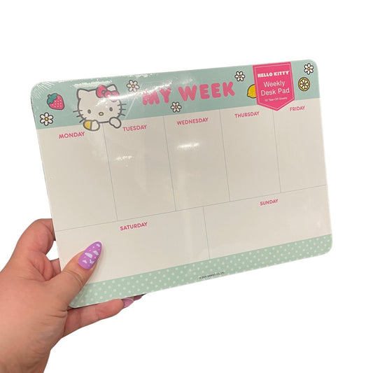 Hello Kitty Strawberry Lemonade Weekly Desk Pad | Undated Planning Pad | 60 Perforated Sheets