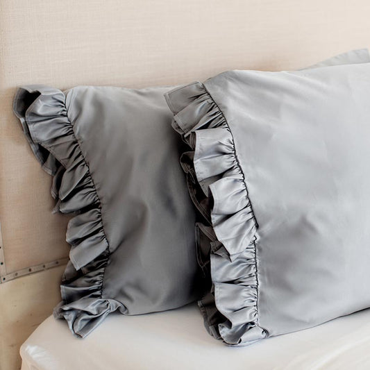Ruffled Satin Pillowcase in Gray | Standard Size