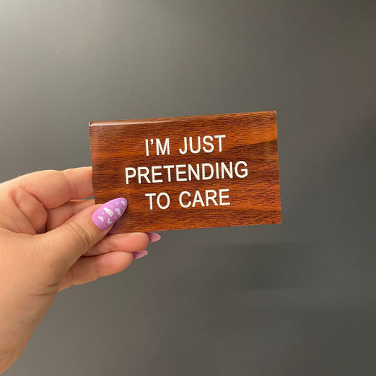 I'm Just Pretending To Care Mini Desk Sign | Funny Nameplate Desk Accessory
