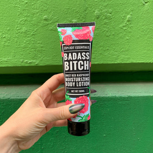 Explicit Essentials Bad Ass Bitch Body Lotion in Red Raspberry