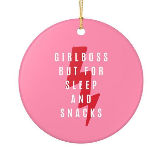 Girl Boss But For Sleep and Snacks Ceramic Ornament | Funny Lazy Girl Holiday Decor | Cozy Gift for Nappers & Snack Lovers