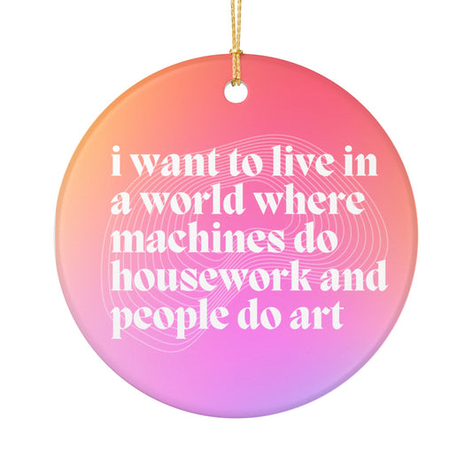 I Want to Live in a World Where Machines Do Housework Ceramic Ornament | Funny Feminist Holiday Decor | Gift for Artists & Dreamers