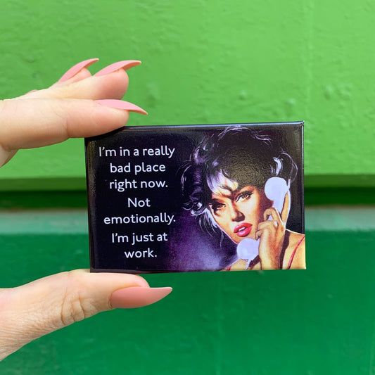 I'm in a Really Bad Place Right Now. Not Emotionally. I'm Just at Work Fridge Magnet