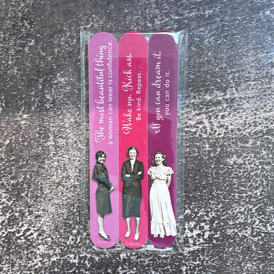 Confidence Emery Boards Set of 3 Inspirational Vintage Nail Files SME25 | Empowering Manicure Gift in Vinyl Case