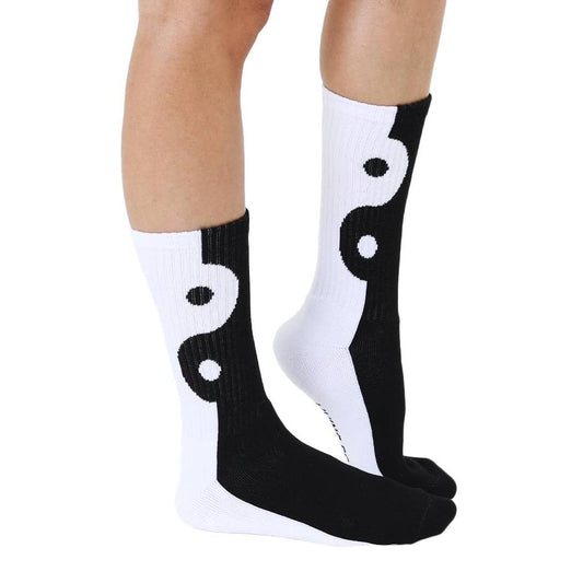 Yin Yang-Black & White Classic Crew Socks with Ribbed Tubing | Seamless Toe Seam Novelty Socks