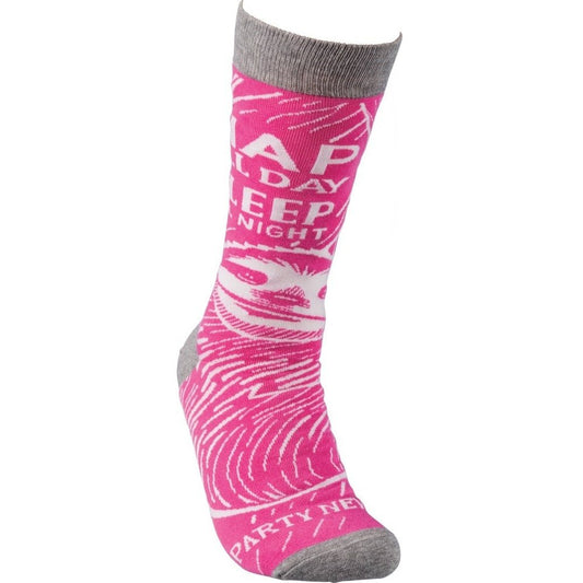 Nap All Day, Sleep All Night, Party Never Sloth Pink Funny Novelty Socks