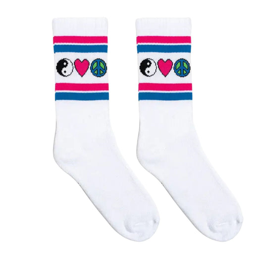 Iconic Y2K Symbols White Classic Crew Socks with Ribbed Tubing | Seamless Toe Seam Novelty Socks