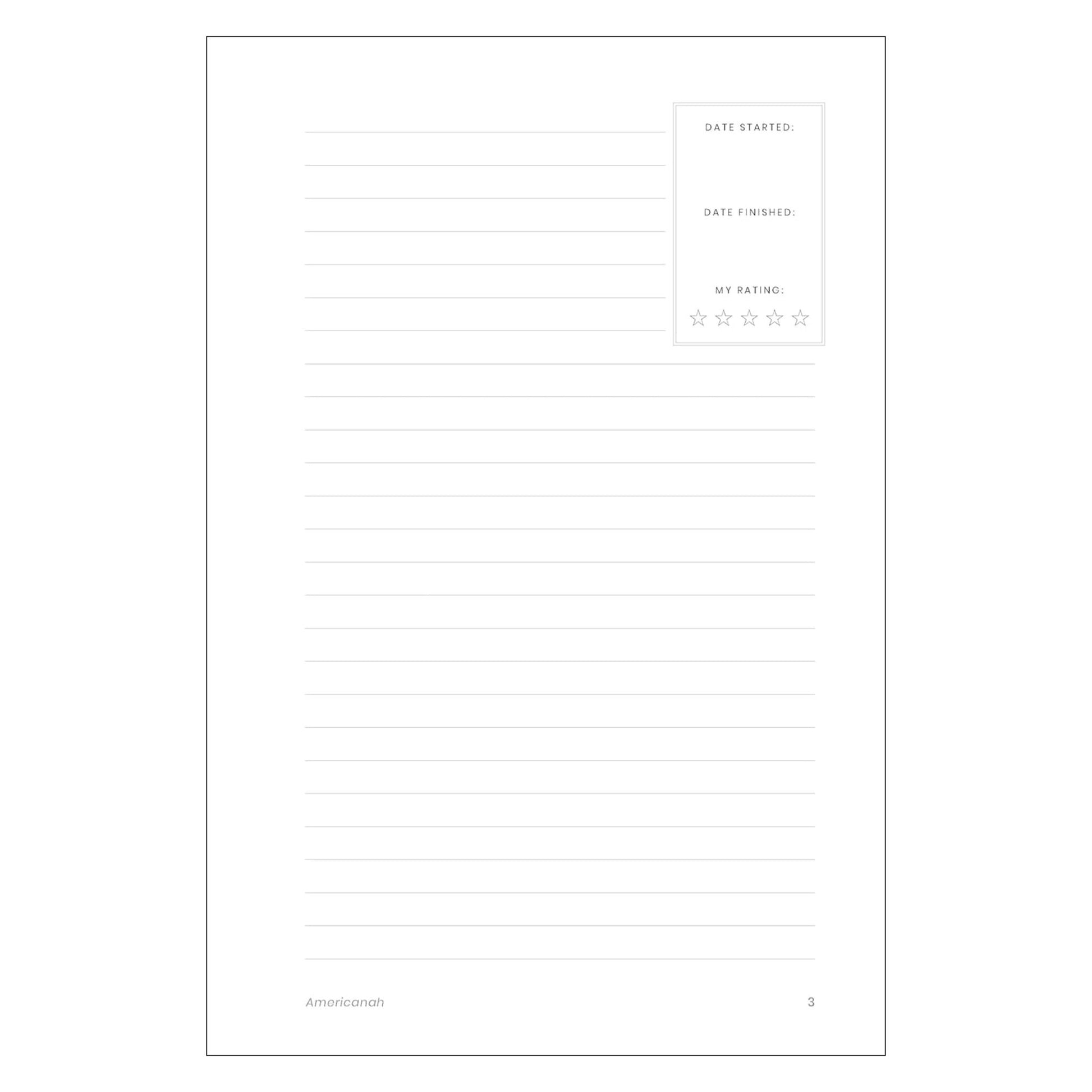 - Space to record your thoughts, reflections, and favorite quotes for every book you read.