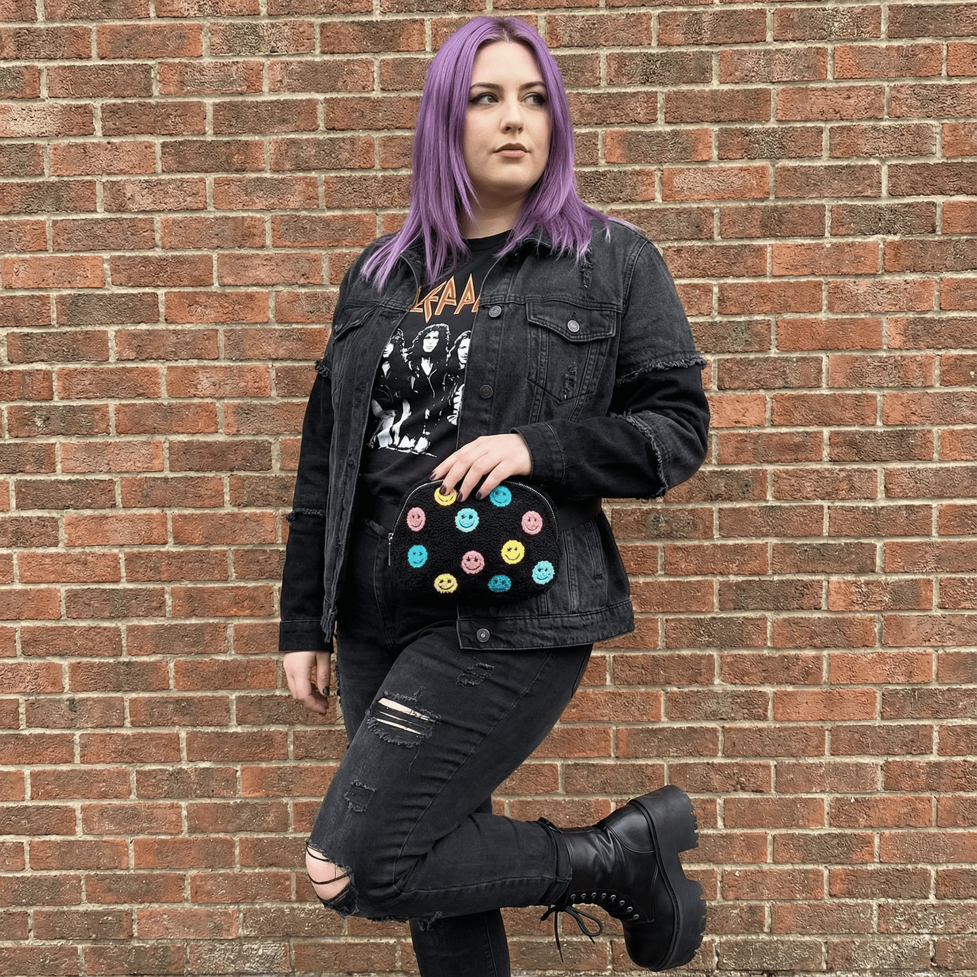 Spread good vibes everywhere you go with the Multi-Colored Happy Faces Adjustable Belt Bag in Black! This fun and functional accessory combines playful style with everyday practicality — perfect for festivals, errands, or adventures on the go.