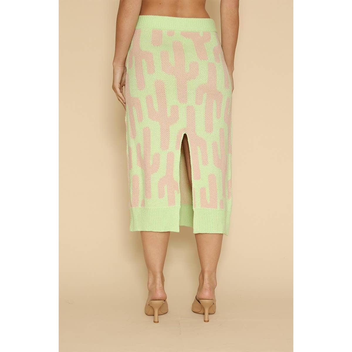 Cactus Knit Midi Skirt | Green Intarsia Cactus Sweater Skirt | Boho Desert Knit SkirtLow stock: 2 left