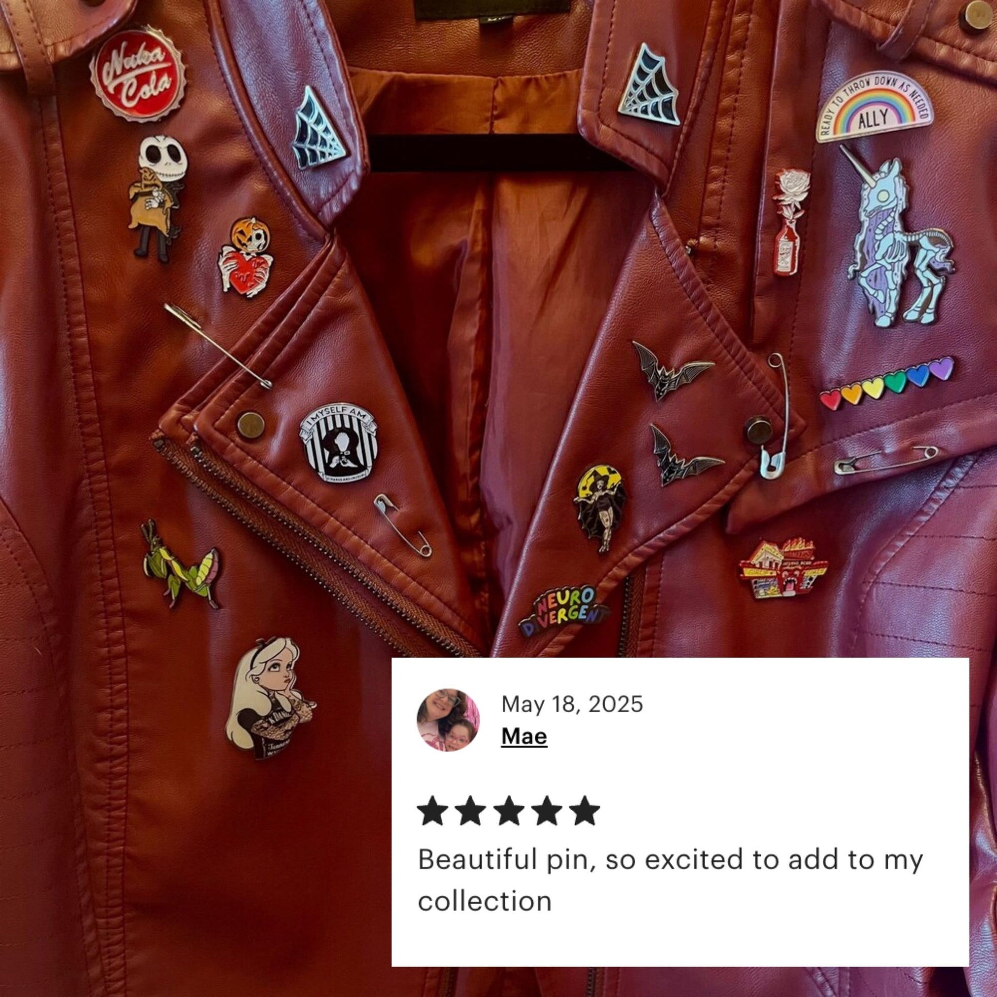 This "Ally" lapel pin is printed on crystal clear acrylic.